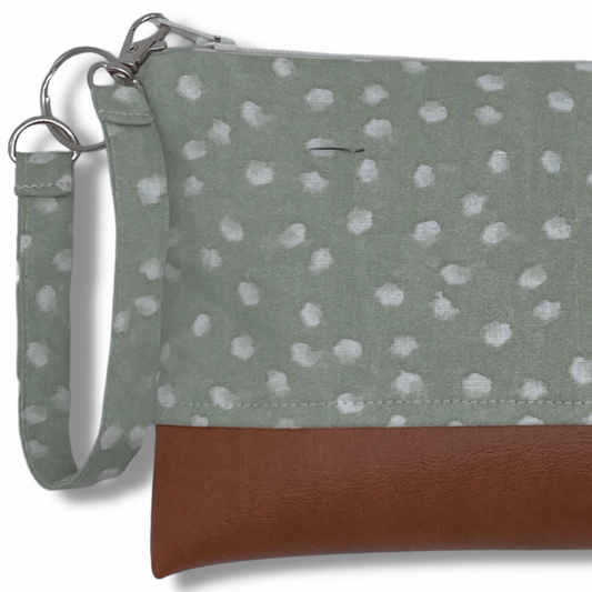 Mint Dots Large Zipper Clutch